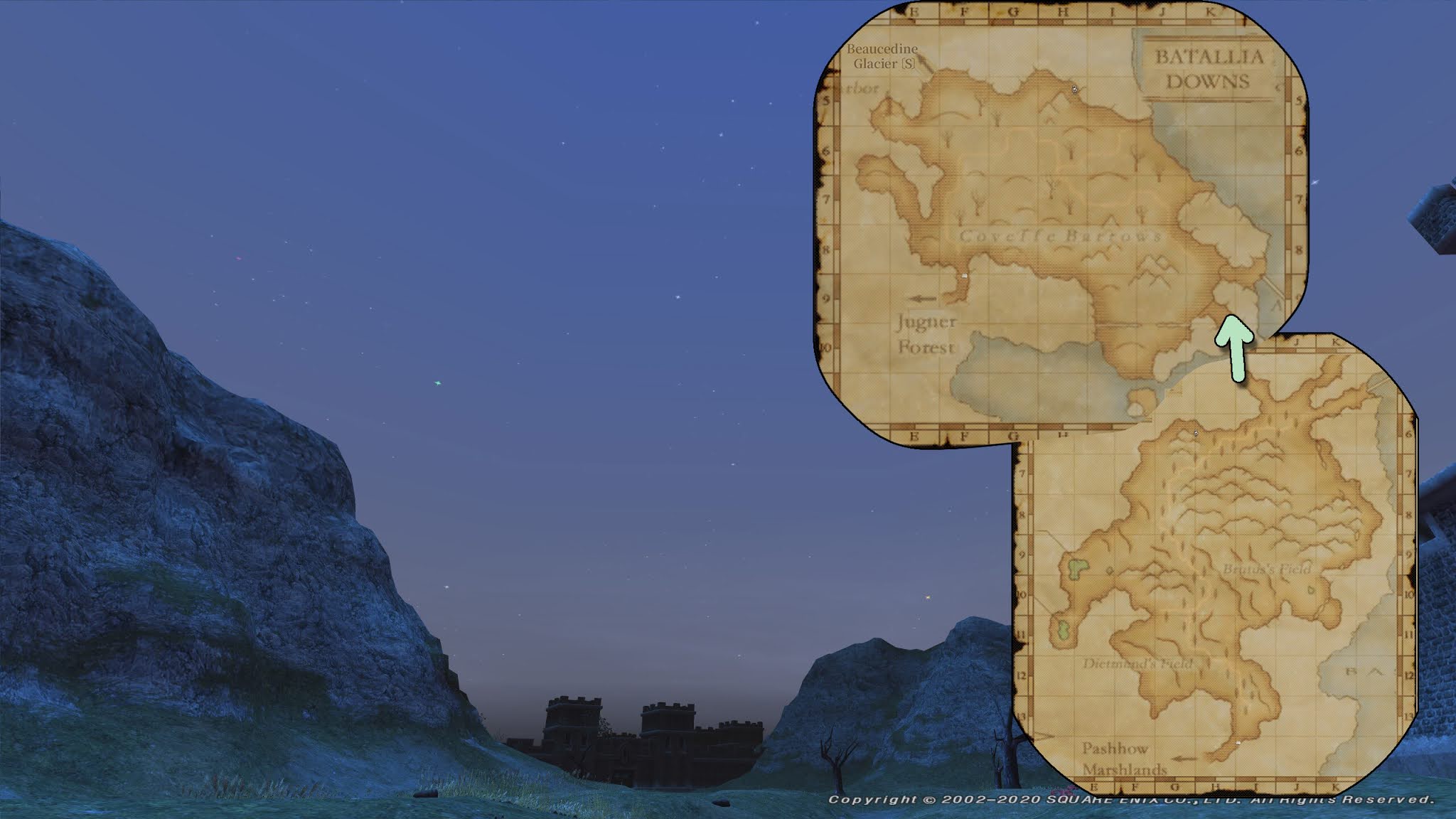 また、現代側エリアと基本地形が同じと言っても、アルタナエリアでの ジュノ周辺から三国〔S〕までのルートでは、これら新エリアを通る必要があるため、立ち寄るダンジョンで地図ゲットのクエストもクリアしてから行くのが、実装当時の手順でした